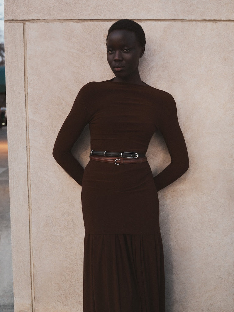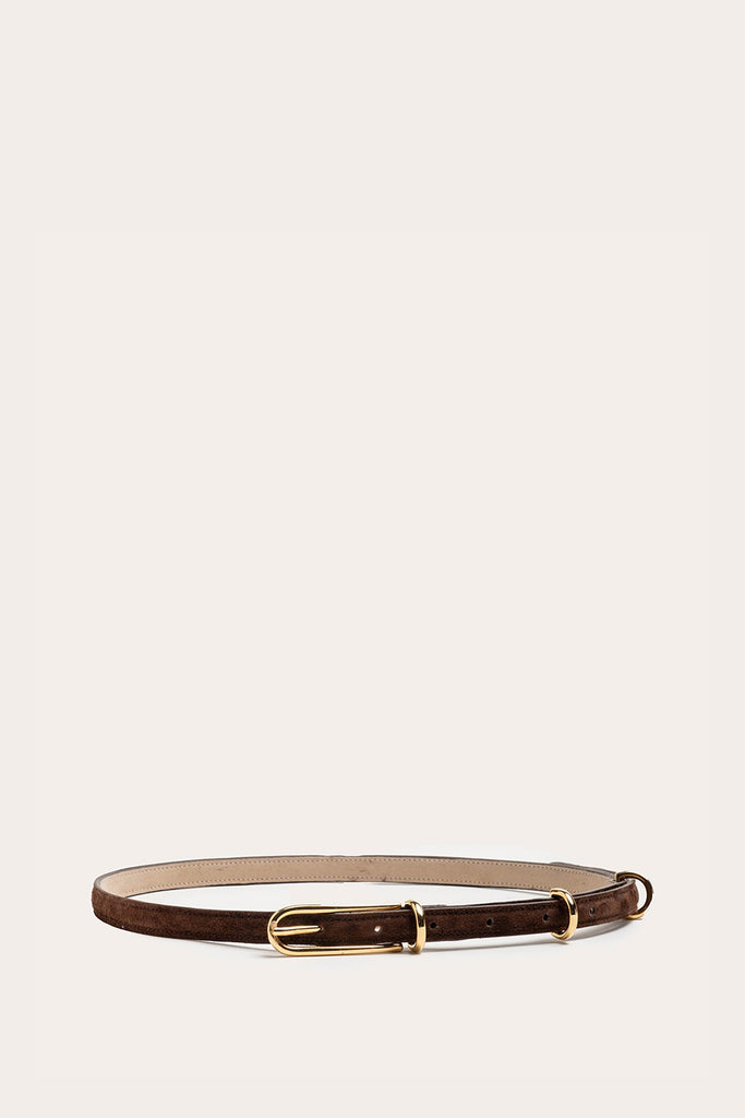 Made from smooth black leather or dark brown suede, the Three Keepers Belt is designed with the same silver-tone slender buckle as our Belted Bucket Bags. It features extra hardware in the form of three evenly spaced sleek metallic loops. Cinch it over a blazer or a dress.
