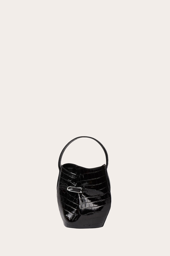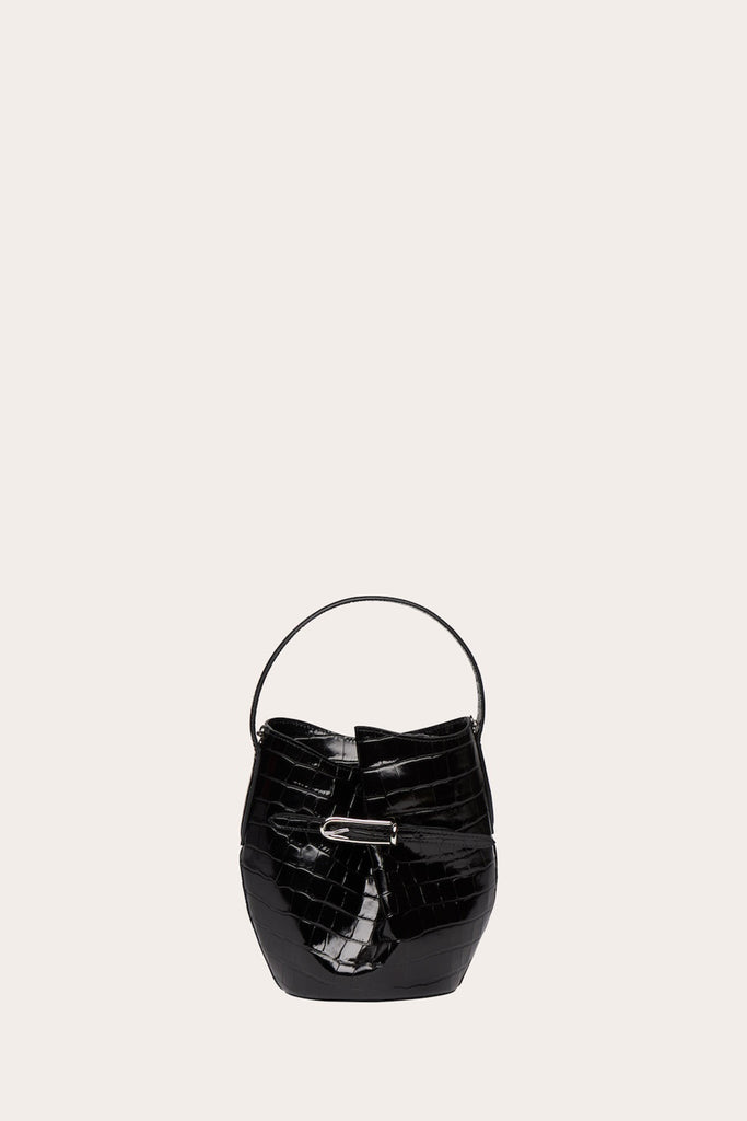 The mini version of the Belted Bucket Bag features a soft silhouette artfully fastened with a diagonal buckle and finished with a slender top handle. Just big enough for your sunglasses, lip gloss and wallet, it will add a bohemian vibe to day or evening outings.