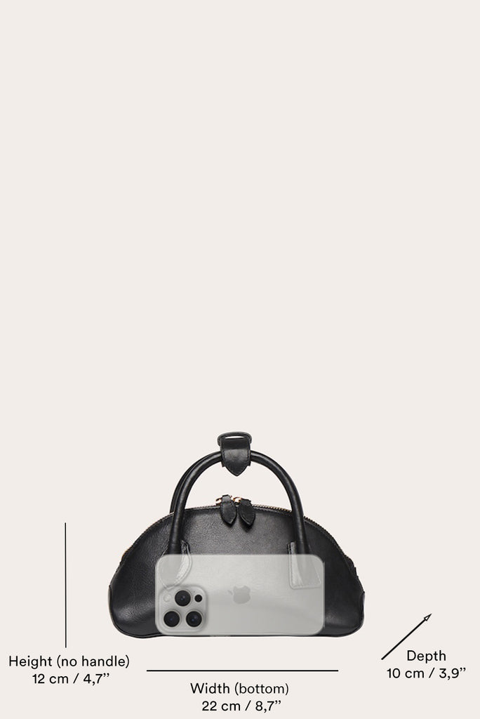 The scaled down version of the EW Dome Bag is a playful plus one for a night out. Its compact silhouette fits cards and gloss, while mismatched top handle tabs —an updated take on our signature sprout design—lend a little edge to your outfit.