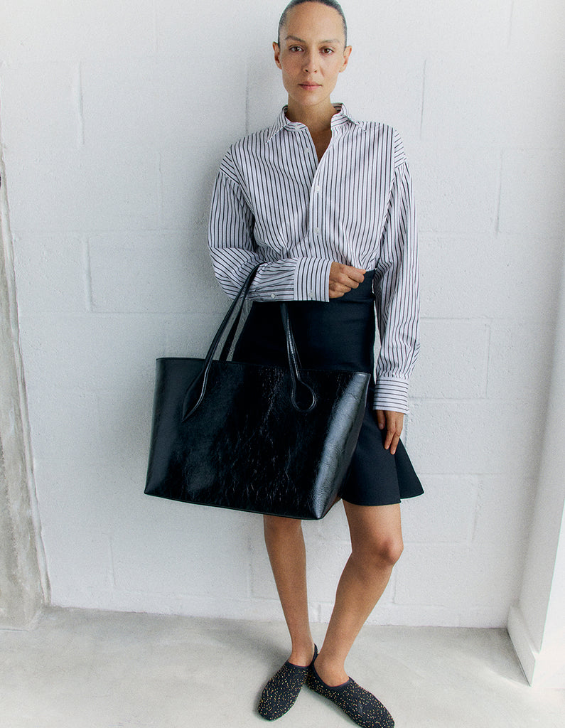 Refined and artistic yet slouchy and oversized. A bold tote large enough to fit all your weekend getaway essentials. Please note - this is a large tote bag, please double check the measurements before placing your order.
