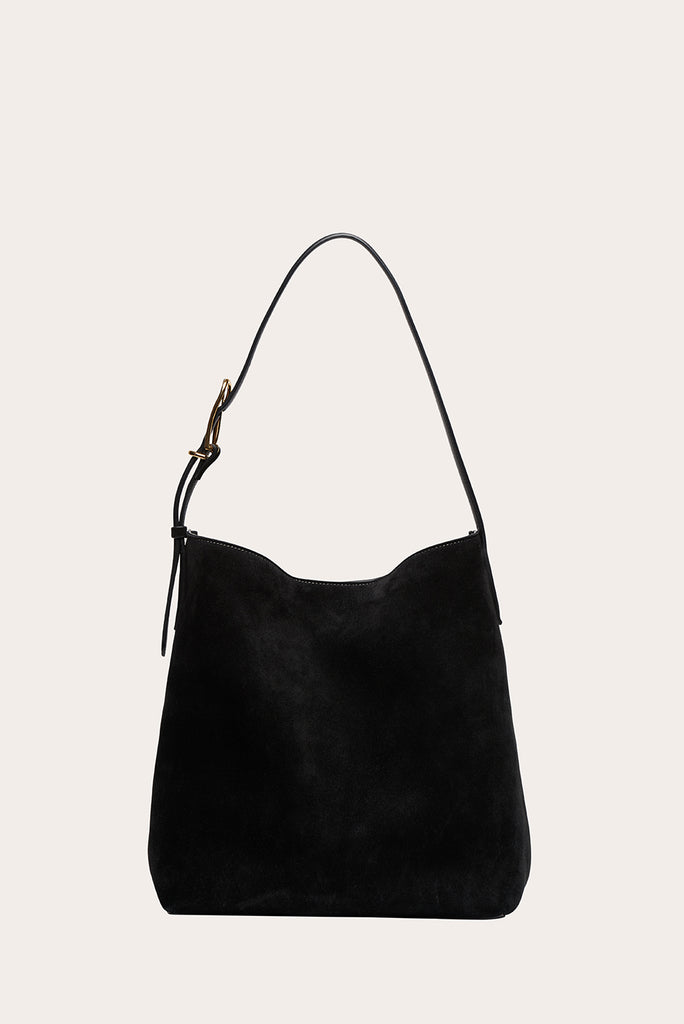 Unlined suede makes The Slouch Bucket Bag effortlessly lightweight, accentuating its boho-inspired silhouette and sculptural folds. Designed to fit a 13” laptop, a notebook or a tablet, the bag is finished with contrast white stitching and a longer strap.