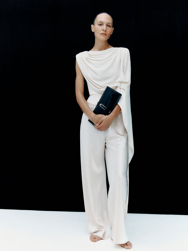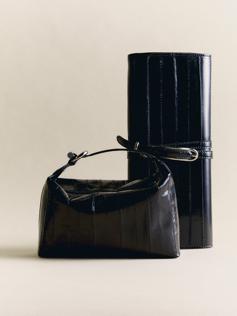 Sleek and compact, this chic clutch features a double-wrapped belted fastening and signature buckle. Perfectly sized for the essentials, it is the ideal pick for gallery strolls, coffee dates and evening outings.