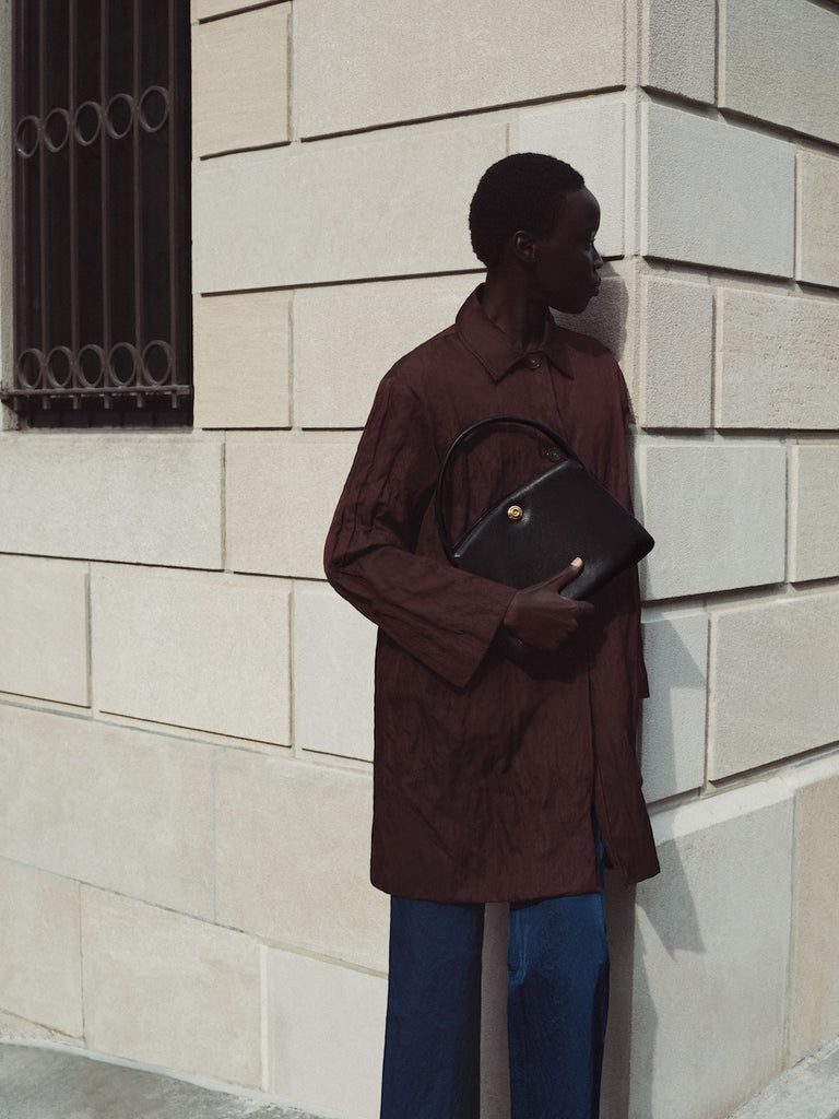 Named for the gleaming mandala-shaped push lock that keeps your belongings secure, this polished shoulder bag excels on busy days that start with meetings and end with martinis. Our vintage-effect leather has a timeless, worn-in look from the start and will continue to age beautifully over time.