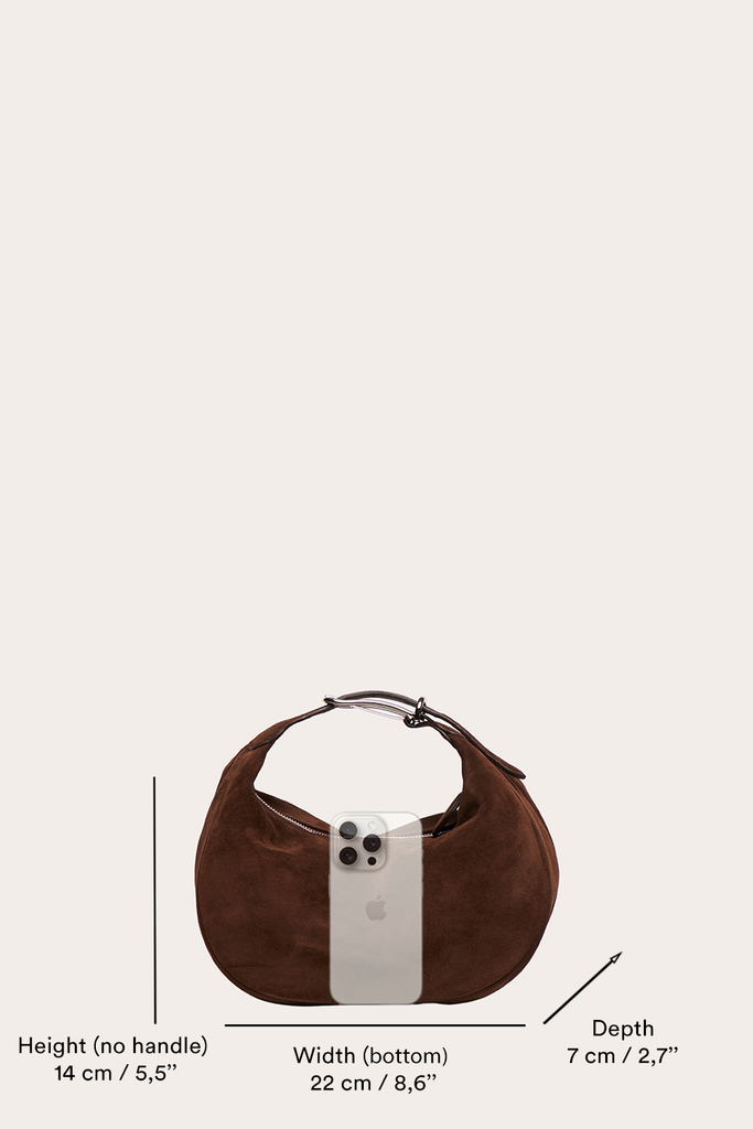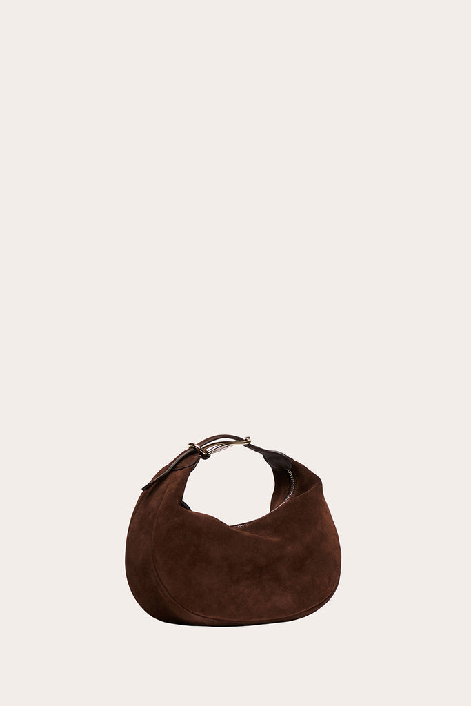 With a soft moon shape in a mini format, the Moon Pouch is the perfect day-to-night companion, keeping your belongings safe with a zip closure. Featuring a slender buckle, it is roomy enough for a phone, gloss and a wallet.